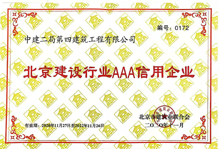 近日,公司榮獲三項高等級信用獎項:2020年度建筑業AAA級信用企業、北京建設行業AAA信用企業、北京建設行業誠信企業。獎項屬公司首次申報并獲獎。申報工作由公司市場部牽頭組織、各部門配合共同完成。